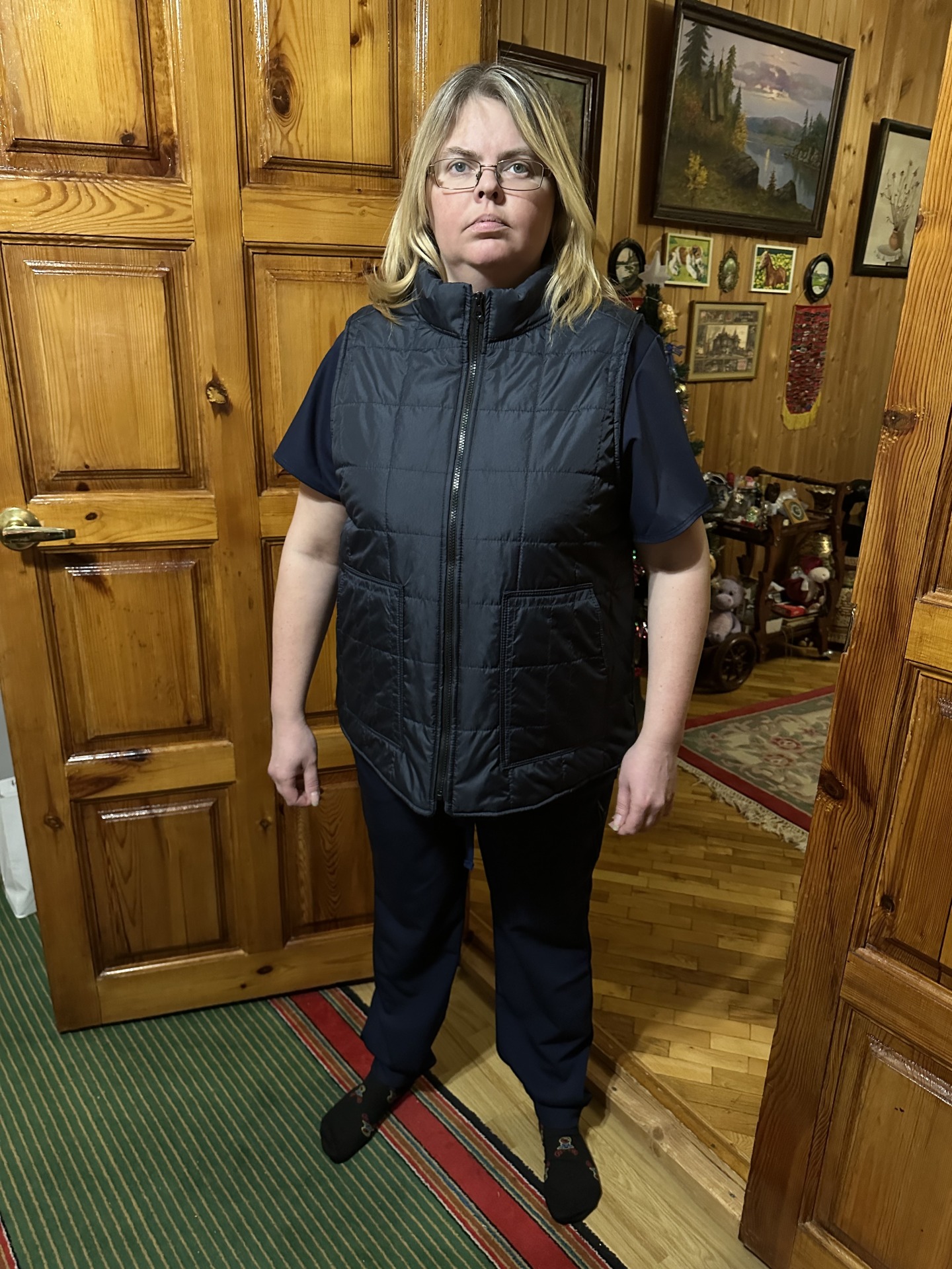 Представляем вам идеальный жилет для прохладных дней! Его главные преимущества – это невероятный комфорт и продуманный дизайн. Внутри вас ждет мягкий и приятный на ощупь флис, который словно обнимает. А за тепло отвечает утеплитель из синтепона плотностью 100, который отлично сохраняет тепло, не добавляя лишнего объема. Стильная клетка – это вечная классика, которая к тому же выгодно подчеркивает фигуру. А высокий воротник-стойка позаботится о вашем горле, защищая от ветра. Благодаря свободному прямому крою, вы сможете забыть о скованности движений – жилет совершенно не мешает, будь то работа или активный отдых.